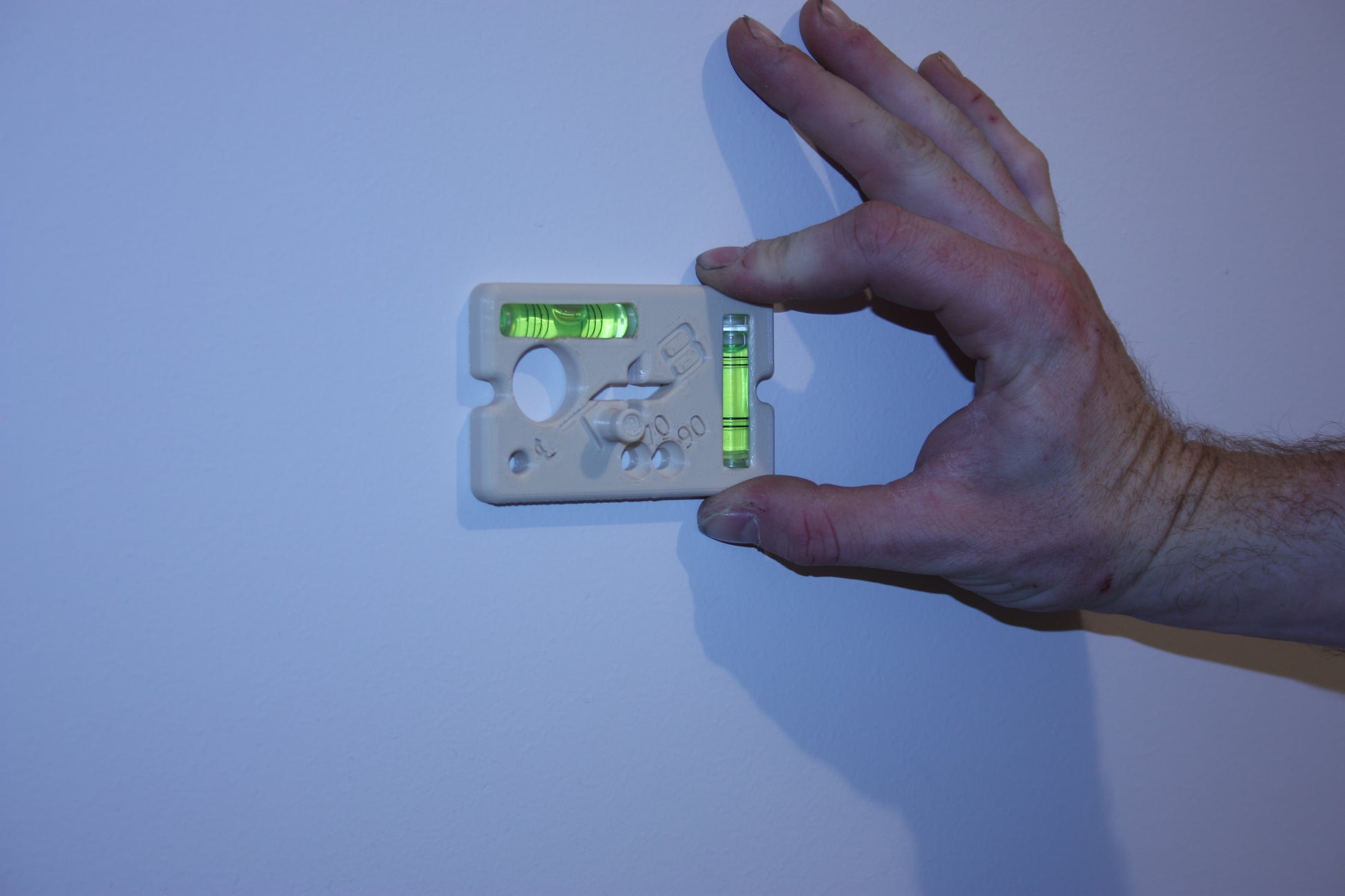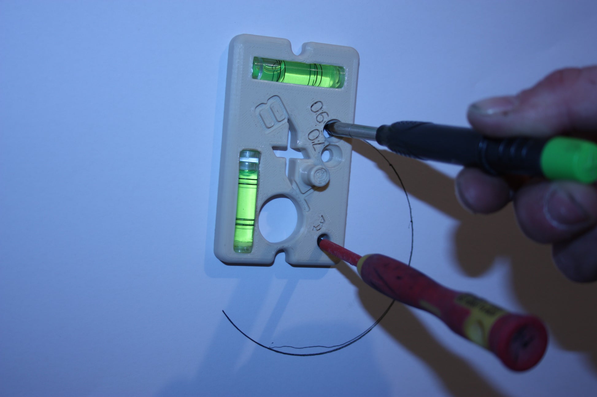 The pivot tab / thumb holder lets you lock the tool in place with one hand while you mark with the other, keeping the template tight to the wall and stopping it from slipping. -